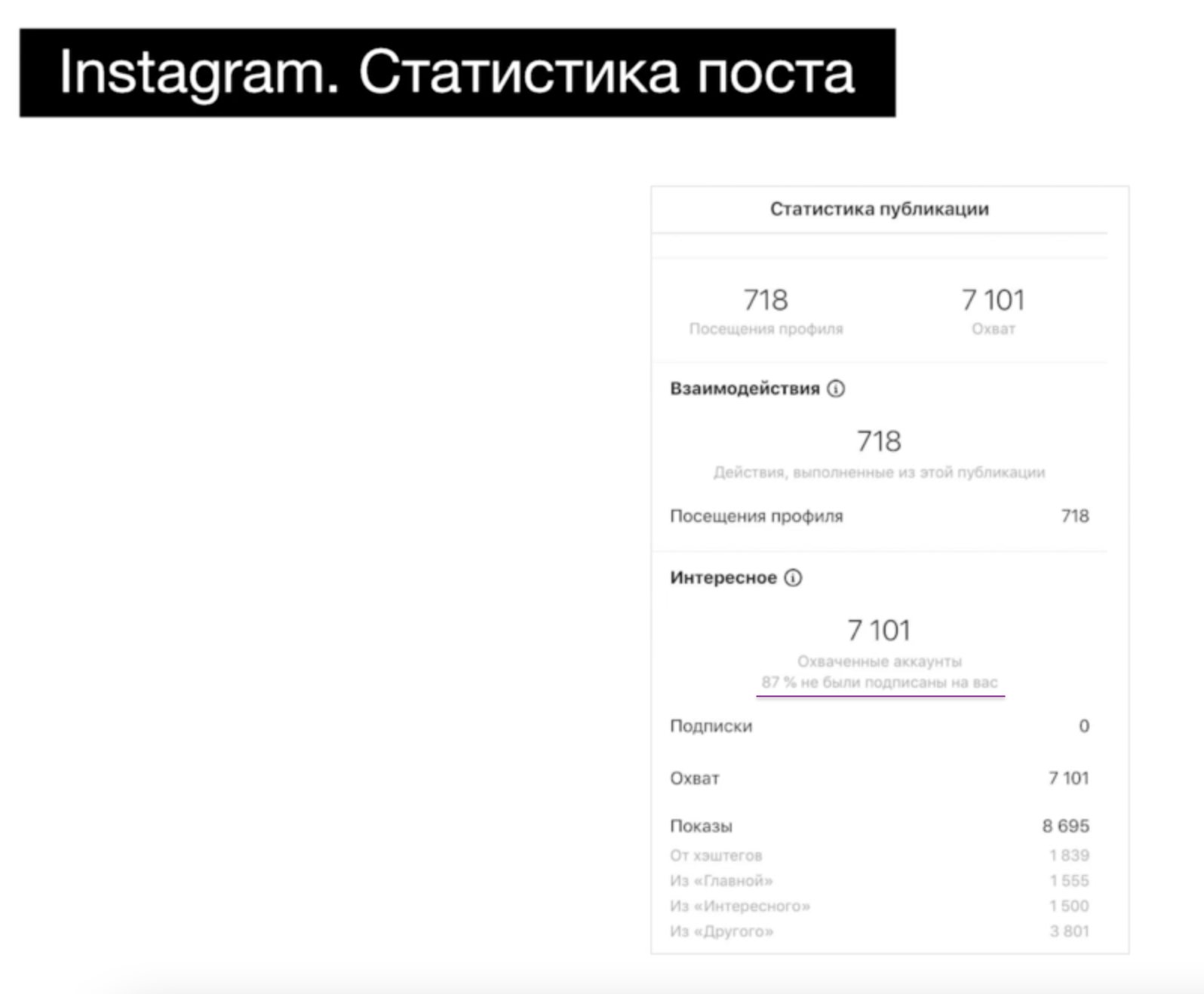 Накрутка обычно выглядит так: охваченные аккаунты, не подписанных на аккаунт, превышают 70%